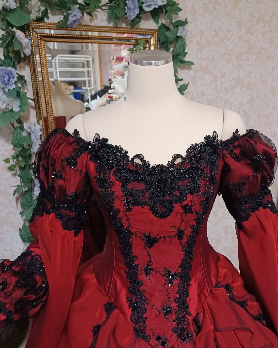 This is one of our most popular gothic or alternative wedding gown. Perfect for a Theme wedding....and will suit a variety of styles including Renaissance, Medieval, Juliet, Gothic or Shakespeare-in-Love.....This gown is nice and dramatic!